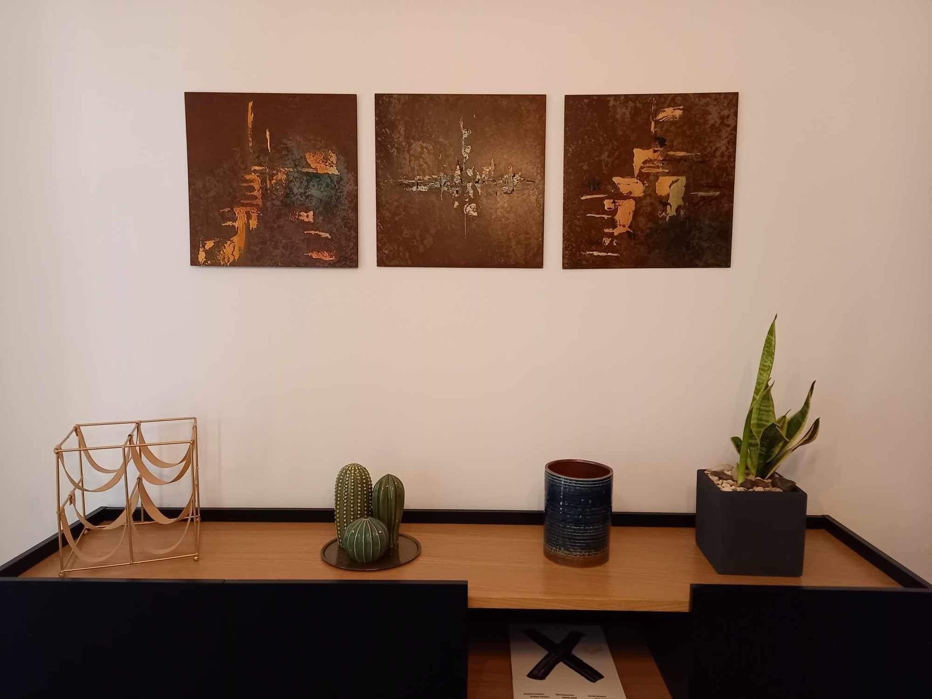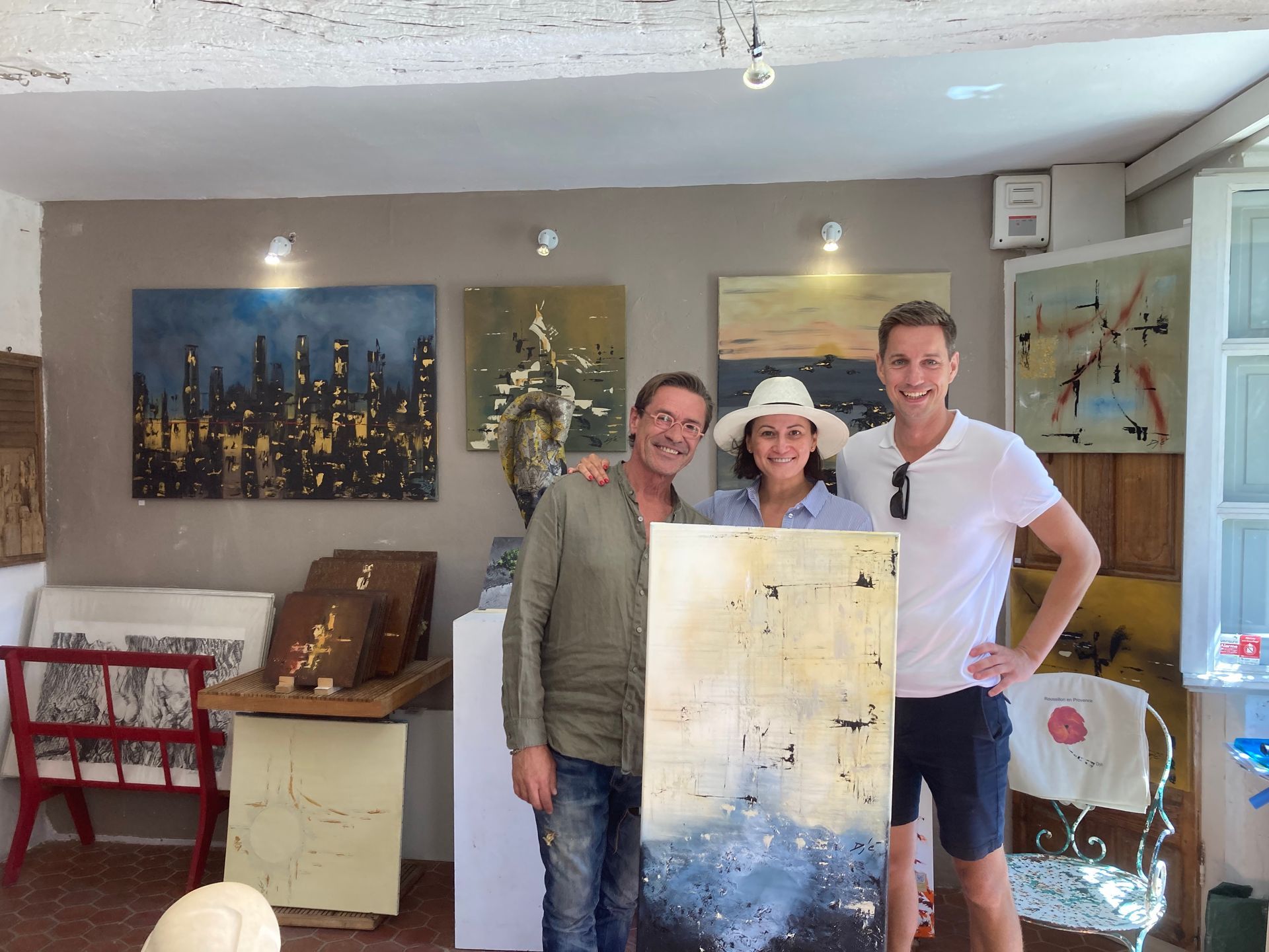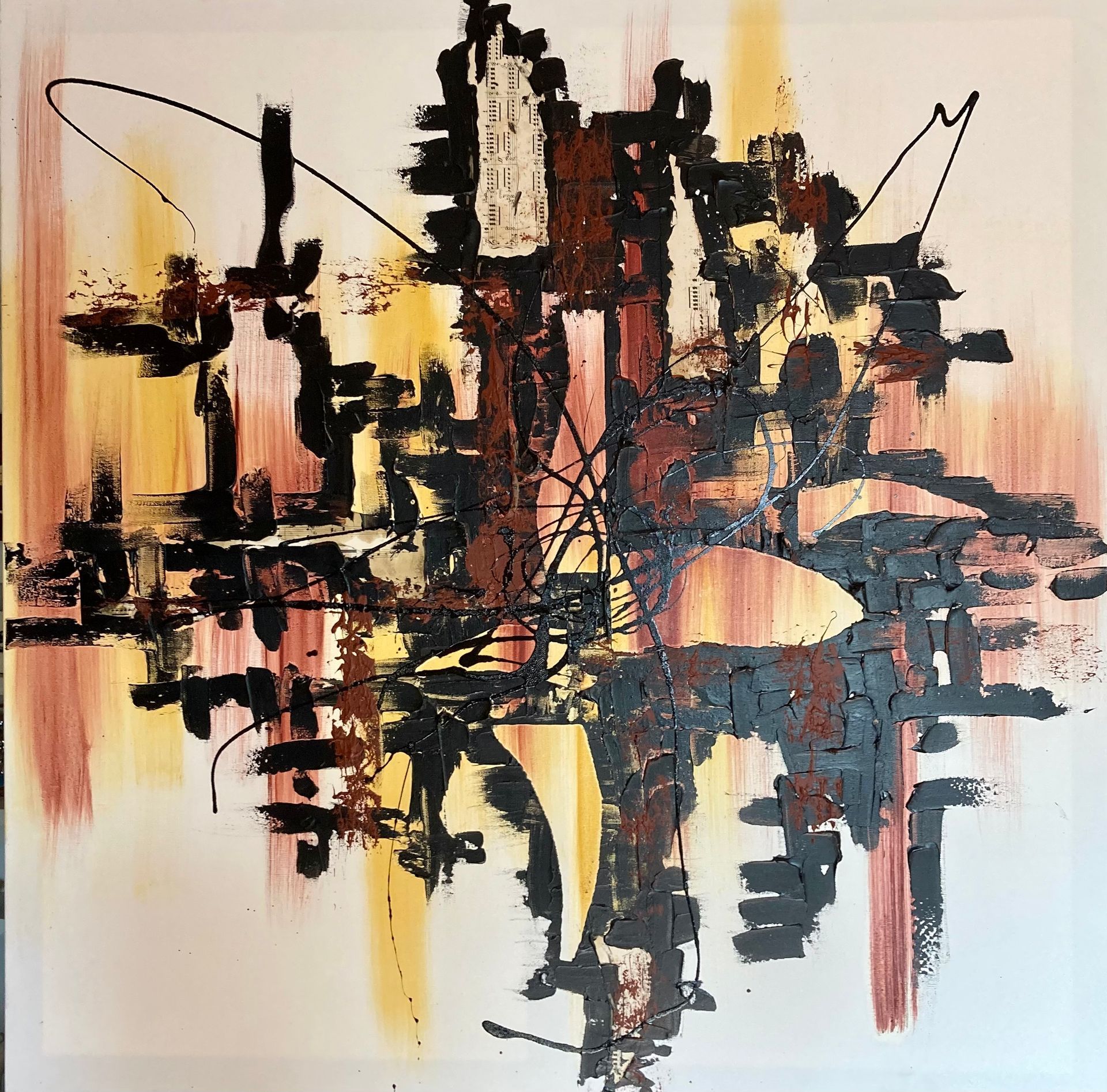 Gerard défend à sa façon la mixité et la pluralité culturelle. Il mêle sans pudeur, les ocres, la terre, le sable, tissus et objets du quotidien mariant ainsi les textures et les couleurs.